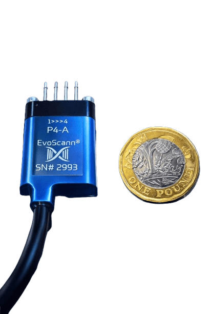 Mit Abmessungen von nur 20 mm x 20 mm x 5 mm ist der P4-A der kleinste handelsübliche Mikro-Druckscanner der EvoScann® P-Serie, die als die kompaktesten und robustesten digitalen Druckscanner der Branche bekannt ist und speziell für Tests an Fahrzeugen entwickelt wurde, sei es zu Lande, in der Luft oder auf See. Dieser Mikro-4-Kanal-Druckscanner überträgt hochpräzise Druckdaten direkt vom CANbus-Netzwerk des Fahrzeugs an einen Webserver.