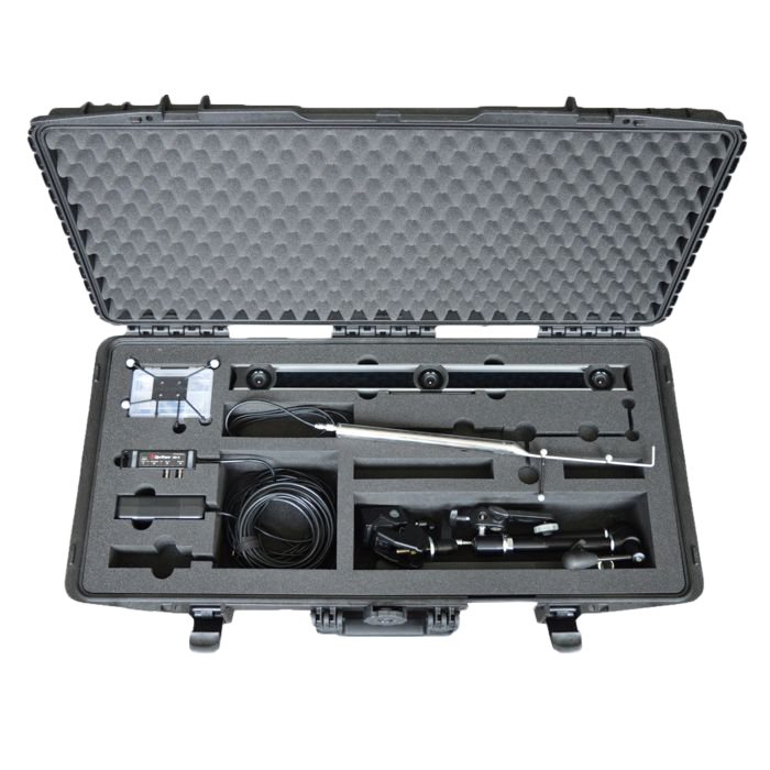 ProCap ist ein einzigartiges neues Werkzeug für die Visualisierung und Messung von Strömungen, das die Benutzerfreundlichkeit und Datenqualität eines 3D-Punktmessscans vereint. Der Strömungsbereich wird vom Benutzer manuell mit einer instrumentierten Handsonde gescannt. Das System zeichnet fortlaufend die Messdaten auf und visualisiert den Strömungsbereich in Echtzeit, da die aktuelle Position der Sonde optisch verfolgt wird. Dieser menschliche Ansatz beim Scannen ist sehr effizient, da in Bereichen mit großen Gradienten das Scannen verfeinert wird und selbst bei komplexen Geometrien kein maschinelles Lernen erforderlich ist. Die gemessenen 3D-Aerodynamikdaten sind in Echtzeit abrufbar und werden in der Regel auf einem großen Bildschirm angezeigt oder an eine Wand projiziert, so dass sie während der Prüfung gut sichtbar sind. Für die weitere Analyse sind die Daten auch offline mit der ProCap-Software oder einer CFD-Analysesoftware verfügbar. Das ProCap-System besteht aus der Mehrlochsonde, Kameras und der ProCap-Software, die Daten sammelt, verarbeitet und anzeigt und die Kommunikation zwischen den Komponenten verwaltet. Die Software verwaltet die Kommunikation und Synchronisierung der Datenerfassungshardware (DAQ-Box), die Überwachung und Konvertierung von Daten der Sonde, räumliche Interpolation, Speicherung und Import/Export von Daten sowie die Echtzeitanzeige des Strömungsfelds und der Modellgeometrie.