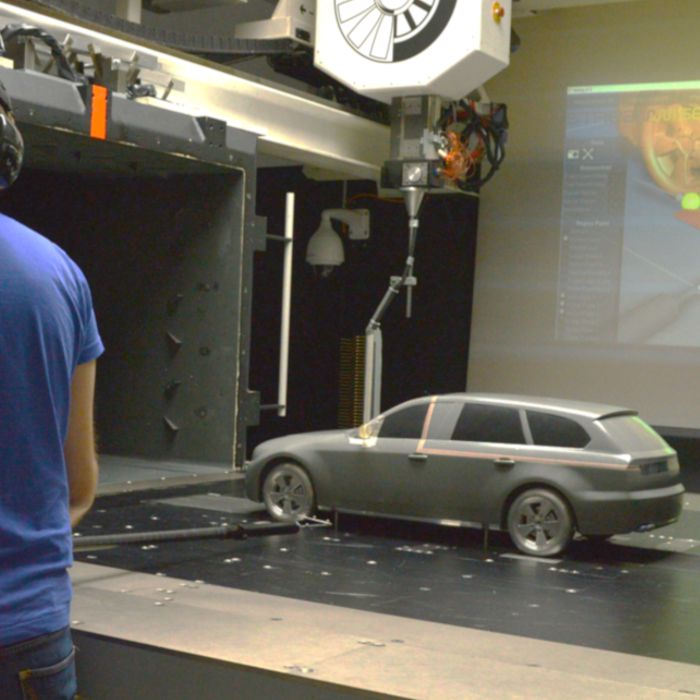 ProCap ist ein einzigartiges neues Werkzeug für die Visualisierung und Messung von Strömungen, das die Benutzerfreundlichkeit und Datenqualität eines 3D-Punktmessscans vereint. Der Strömungsbereich wird vom Benutzer manuell mit einer instrumentierten Handsonde gescannt. Das System zeichnet fortlaufend die Messdaten auf und visualisiert den Strömungsbereich in Echtzeit, da die aktuelle Position der Sonde optisch verfolgt wird. Dieser menschliche Ansatz beim Scannen ist sehr effizient, da in Bereichen mit großen Gradienten das Scannen verfeinert wird und selbst bei komplexen Geometrien kein maschinelles Lernen erforderlich ist. Die gemessenen 3D-Aerodynamikdaten sind in Echtzeit abrufbar und werden in der Regel auf einem großen Bildschirm angezeigt oder an eine Wand projiziert, so dass sie während der Prüfung gut sichtbar sind. Für die weitere Analyse sind die Daten auch offline mit der ProCap-Software oder einer CFD-Analysesoftware verfügbar. Das Herzstück des Systems ist die ProCap-Software, die die Daten sammelt, verarbeitet und anzeigt sowie die Kommunikation zwischen den Komponenten verwaltet. Die Software verwaltet die Kommunikation und Synchronisation der Datenerfassungshardware (DAQ-Box), die Überwachung und Konvertierung der Daten der Sonde, räumliche Interpolation, Speicherung und Import/Export von Daten sowie Echtzeitanzeige des Strömungsfeldes und der Modellgeometrie.